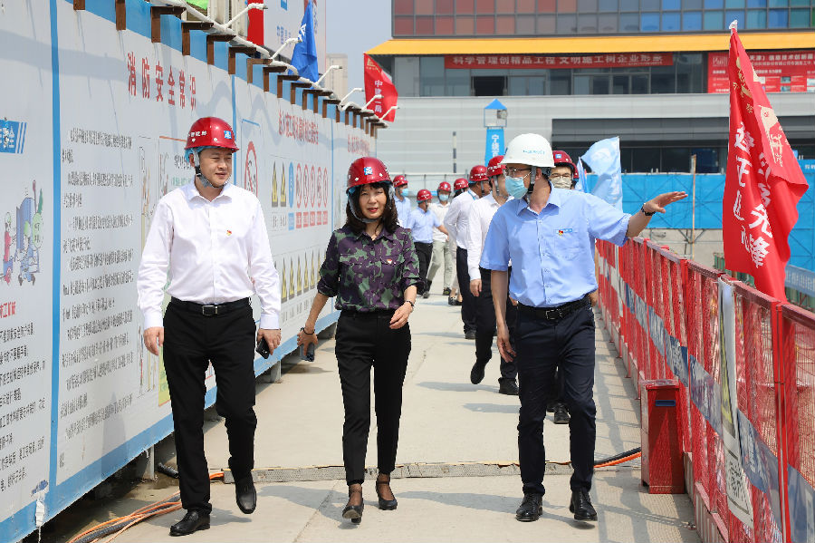 首先白麗莉一行來到了天津網(wǎng)絡(luò)安全中心項(xiàng)目,聽取了項(xiàng)目經(jīng)理田衛(wèi)國的匯報(bào),并參觀項(xiàng)目“建證”黨建觀摩工地及智慧展廳,隨后前往中建二局四公司總部參觀文化展廳。